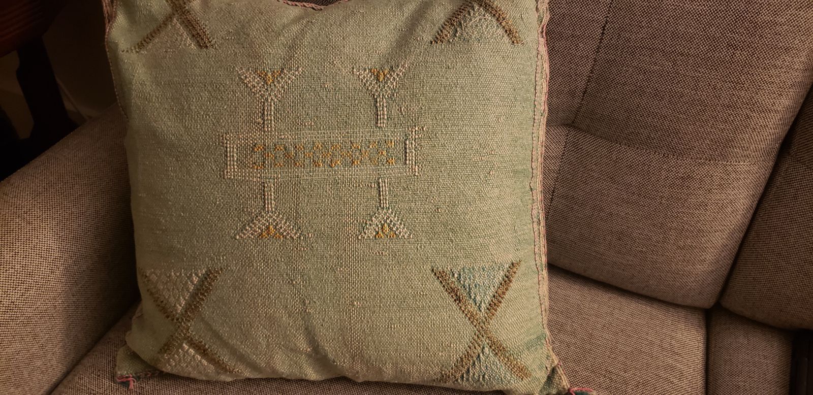 This cactus silk pillow was handwoven from silk from the Sabra Cactus plant. Each pillow is unique with their berber symbols and are one of a kind.