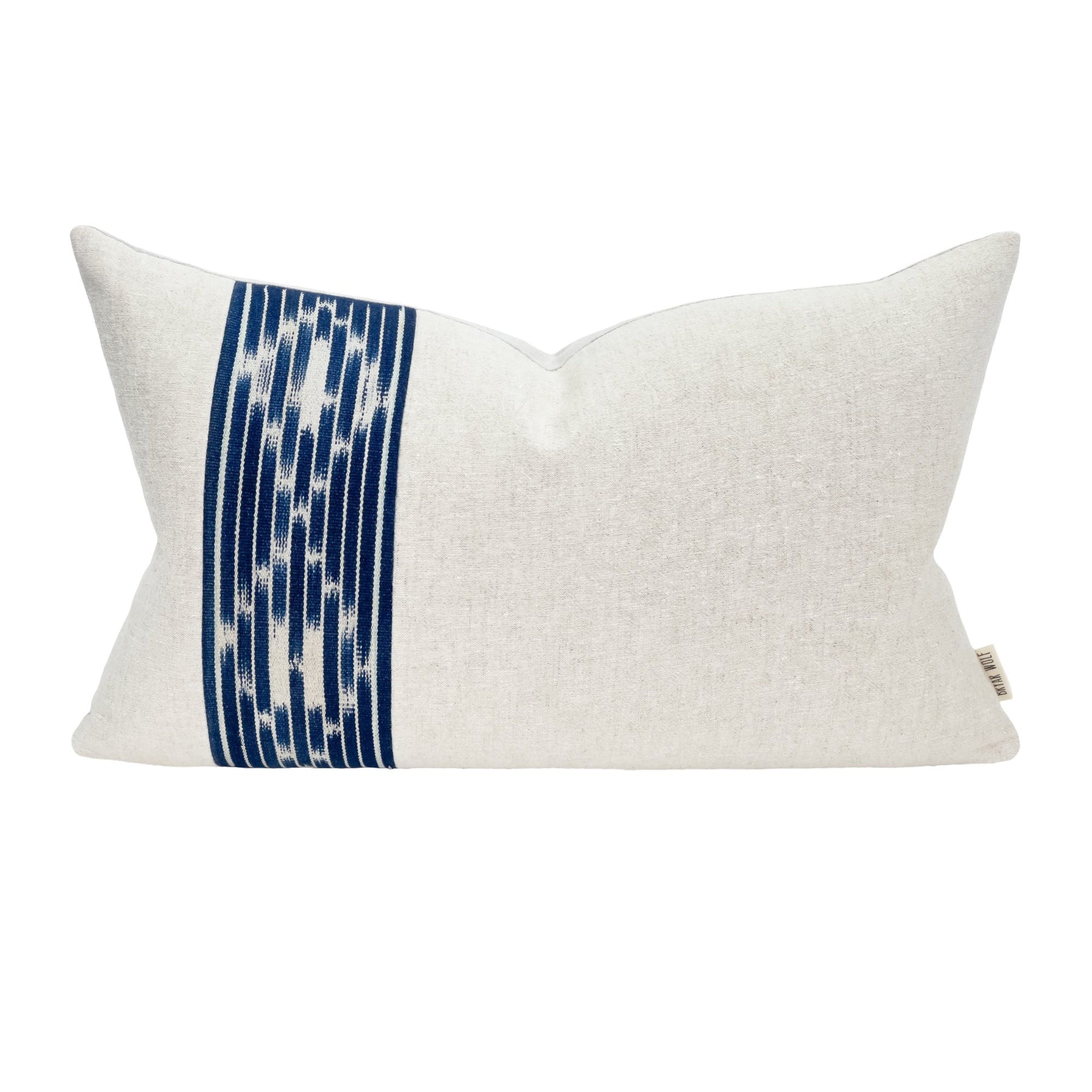 While every Bryar Wolf item is distinctive and essentially, one of a kind, the word "unique" is especially accurate for this boho lumbar pillow. The beautiful geographic patterns convey a subtle sense of motion and the results are downright mesmerizing. To be clear, no one pillow is exactly like another. The designs and sizes in the collection are made in production runs of ten pillows or fewer so when you add one of these works of art to your home living space, you can rest assured that you have one of very few produced. Each piece is hand-sewn and hand-dyed. The back of the pillow is made of linen.