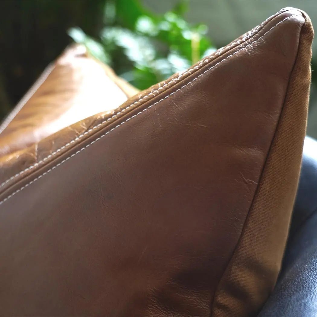Elevate your home decor with our Handcrafted Genuine Leather Accent Pillow. This versatile piece fits effortlessly into any decor style, from modern to rustic, thanks to its rich brown hue and luxurious texture. Crafted from 100% full-grain genuine leather, this pillow boasts meticulous top stitching that highlights its superior craftsmanship. Its lightweight design and easy maintenance make it a practical yet stylish addition to your living room or bedroom. Perfect for adding a touch of sophistication, this pillow is not just an accessory but a timeless investment in comfort and elegance.