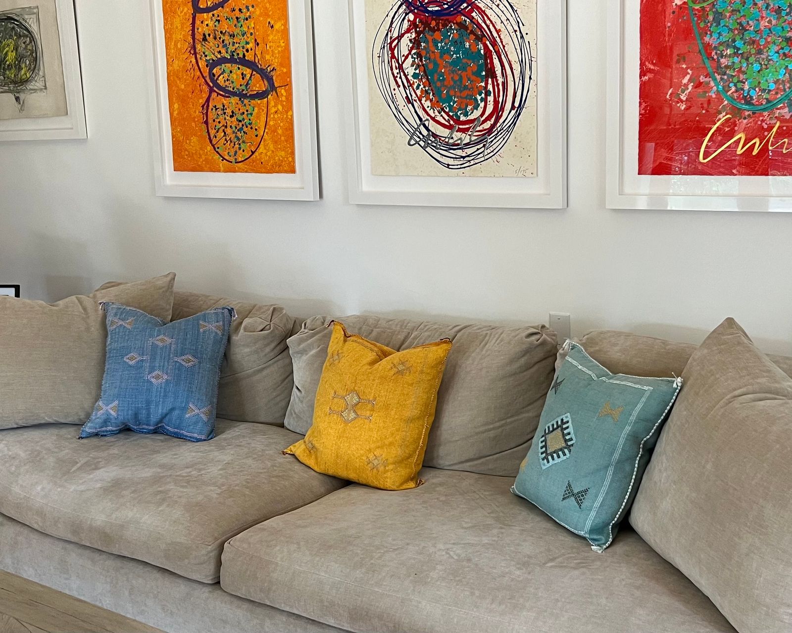 The cactus silk, also known as Sabra silk, used in Bryar Wolf’s Moroccan Silk Collection is handwoven by gifted fiber artisans in the villages of Morocco, North Africa, and the Sahara. Local fair-trade farmers and villagers harvest the leaves of the Saharan Aloe vera, a member of the agave family, for their fine filaments and then handloom the textural canvases into beautiful patterns that evoke ancient Berber design motifs. Every pillow in our luxurious Moroccan Silk collection is a unique, one-of-kind piece. All-natural botanical pigments are used to dye the yarns and each pillow cover earns its own identity and burnished character from washing and drying under the blazing Moroccan sun.