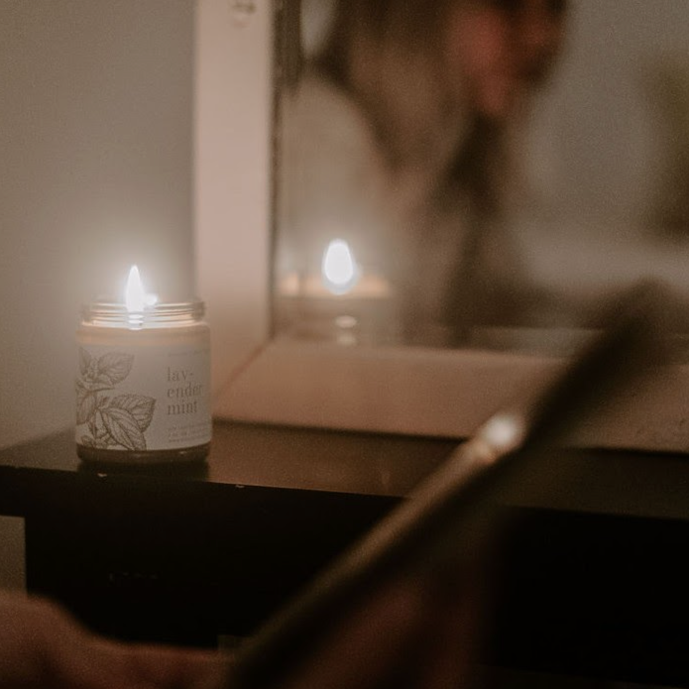 Lavender Mint is a spin on the classic lavender scent. Hints of garden mint tone the bold fragrance of lavender and is complimented with a touch of lemon, eucalyptus, and bergamot oil. Topped off with bergamot and eucalyptus known to calm anxiety and stress, this yummy scent is perfect for any space.