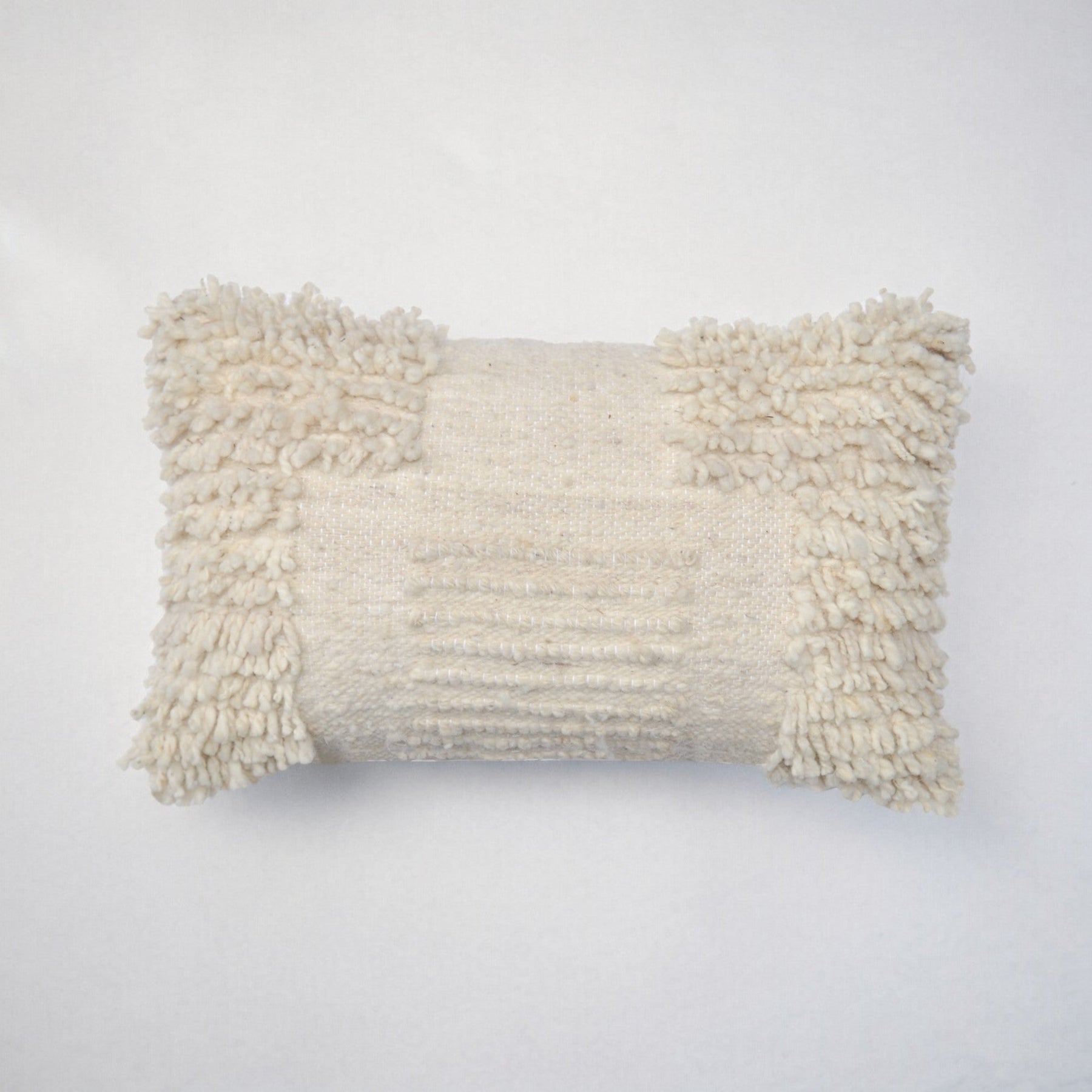 The White Block Pillow Covers are made in a pedal loom from 100% hand-spun wool. Each piece is hand-loomed in an artisan community in the Momostenango region of the Guatemalan highlands. The natural wool gives it a lush luxurious feel. Our pillows are crafted by hand, one at a time, so there will be slight variations in size and color. Through your purchase, you are helping to create sustainable income opportunities for Guatemalan artisans.